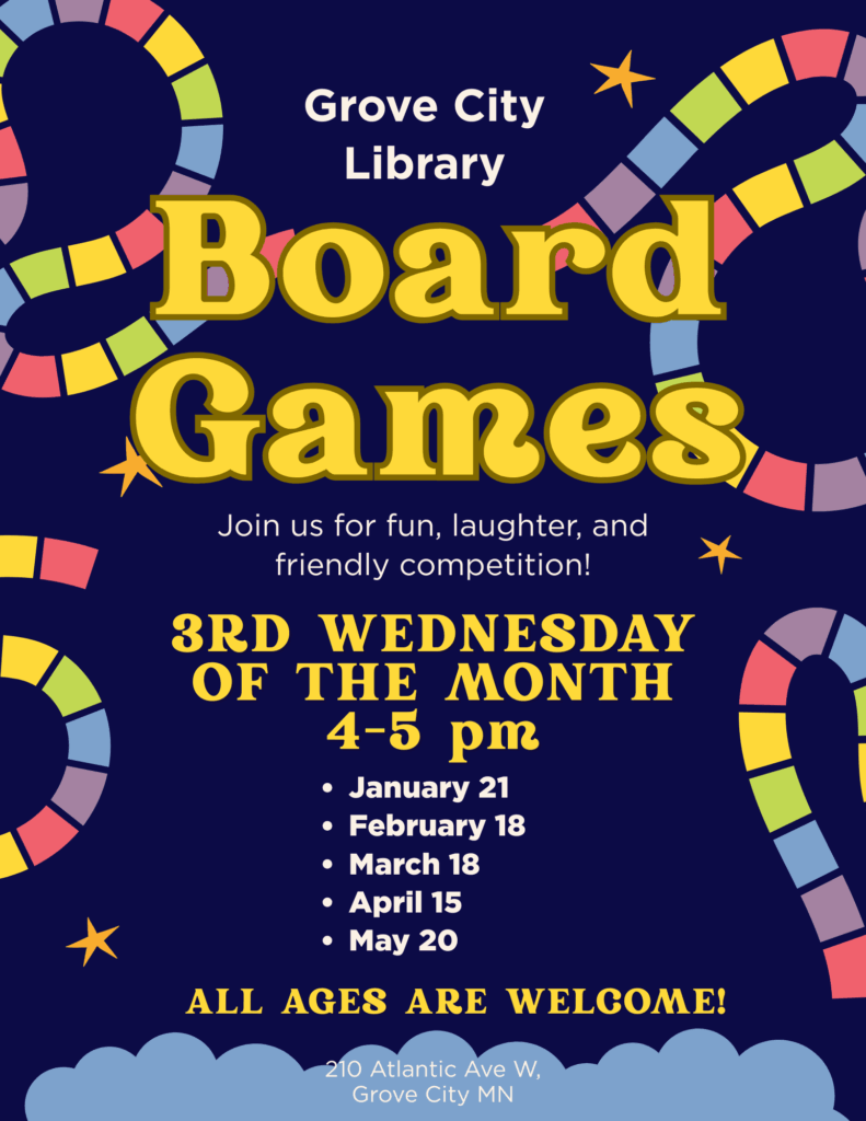 January means the start of Winter Reads, the adult winter reading program for Pioneerland Library System. The program starts at the Grove City Library on Friday, January 2, and ends Friday, March 13.